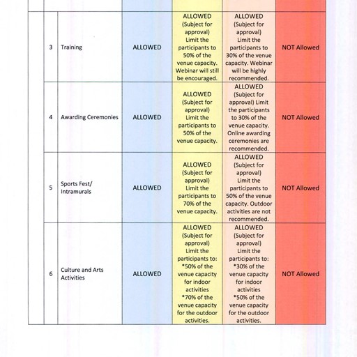 However, the offices concerned shall submit their specific guidelines and procedures for the conduct of their activities to the DRRMC (subject for approval) to facilitate efficient and safe delivery of services and proper dissemination of information.