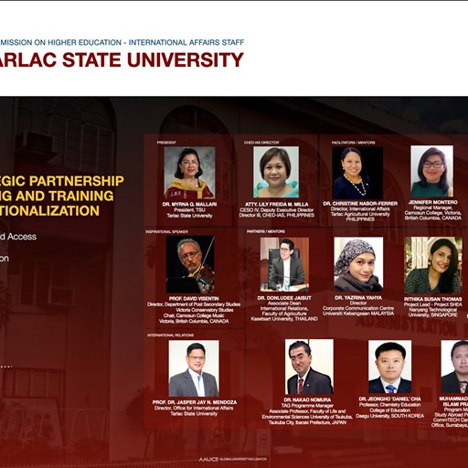 Last March 24 to 26, Tarlac State University organized a mentoring session on strategic partnership expansion and training on internationalization in partnership with the Commission on Higher Education - International Affairs Staff (CHED-IAS) and the IZN Global Collective held via Zoom.