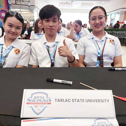 Out of 10 participating Central Luzon colleges and universities, three BS Nursing students led Tarlac State University to win second place overall in the first Regional Battle of the Nightingales, an inter-school nursing quiz bowl, held at SM City San Fernando, Pampanga yesterday (August 25).